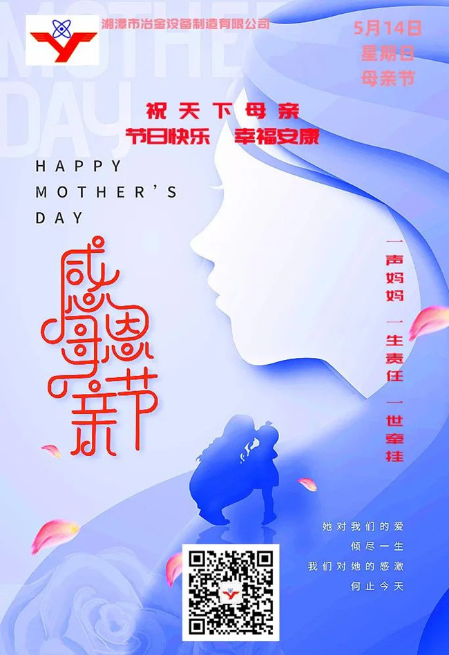 百善孝為先。孝心是對(duì)今天社會(huì)轉(zhuǎn)型期人際間情感疏離的感召,同時(shí)也是“湘冶”企業(yè)文化的重要內(nèi)容。值此母親節(jié)來臨之際,湘潭市冶金設(shè)備衷心祝愿天下母親節(jié)日快樂!幸福安康!