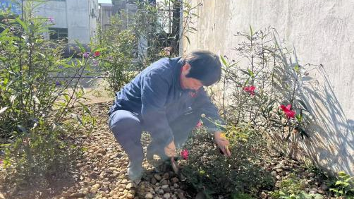除了日常工作之外,胡阿姨還利用自己的休息時間打造了一個小花園。那是一個充滿生機和活力的地方,有各種各樣的花花草草,這個小花園美化了公司的環(huán)境。